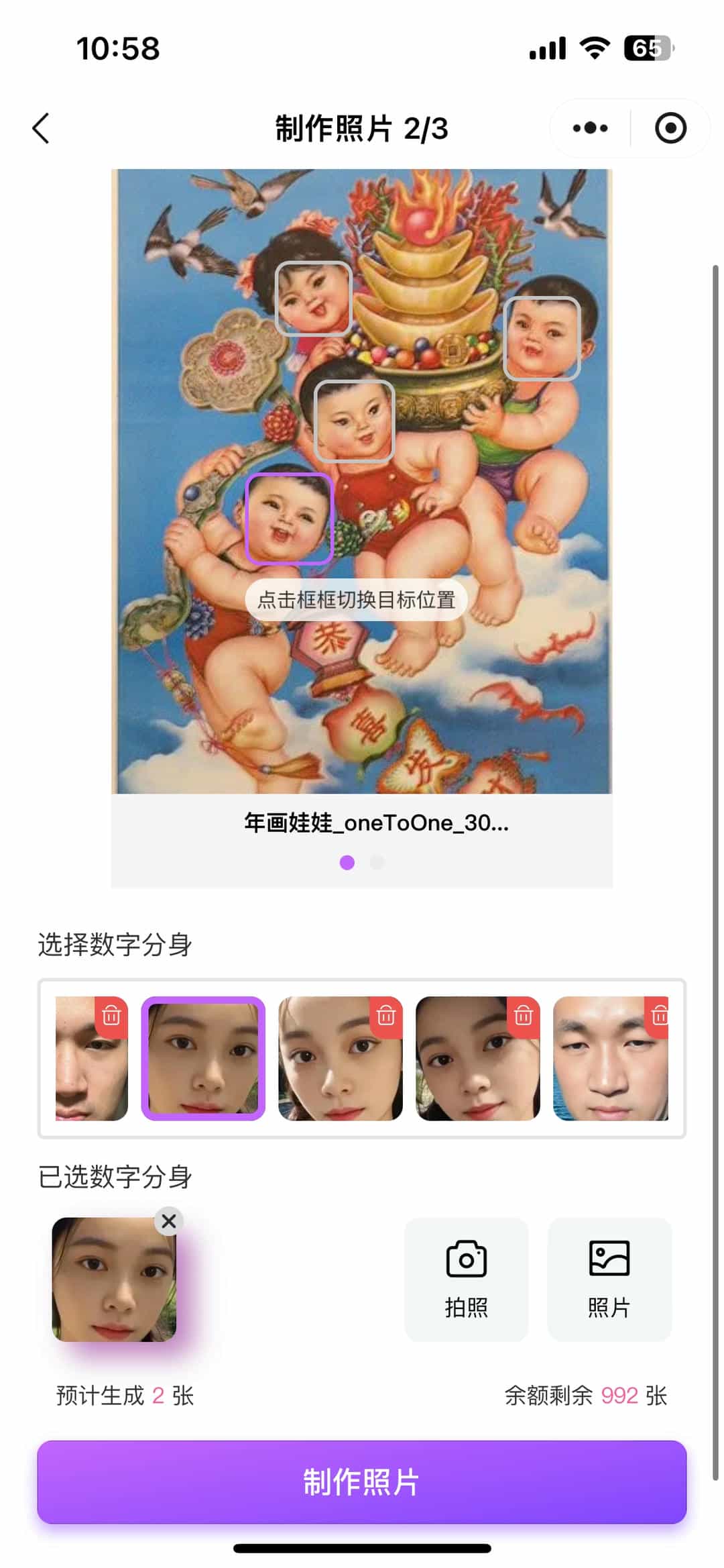![]() AI写真盲盒 | ![]() 数字分身 | ![]() 作图等待页 |