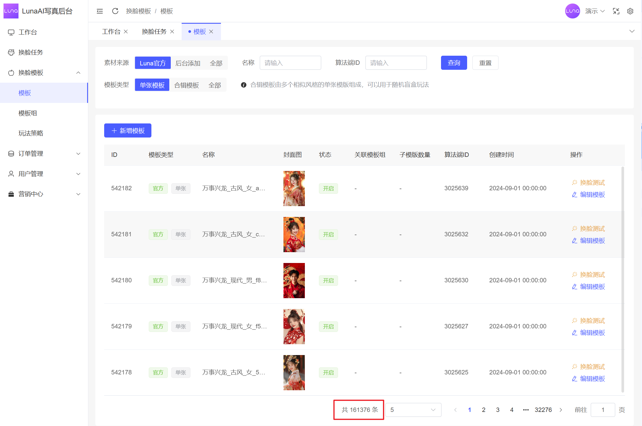 针对这一挑战,我结合多个竞品分析与客户的实际运营痛点,重新设计了一套可自定义模板的系统,以适应快速变化的市场需求。同时,我们还开源了业内首个AI换脸写真企业级解决方案
